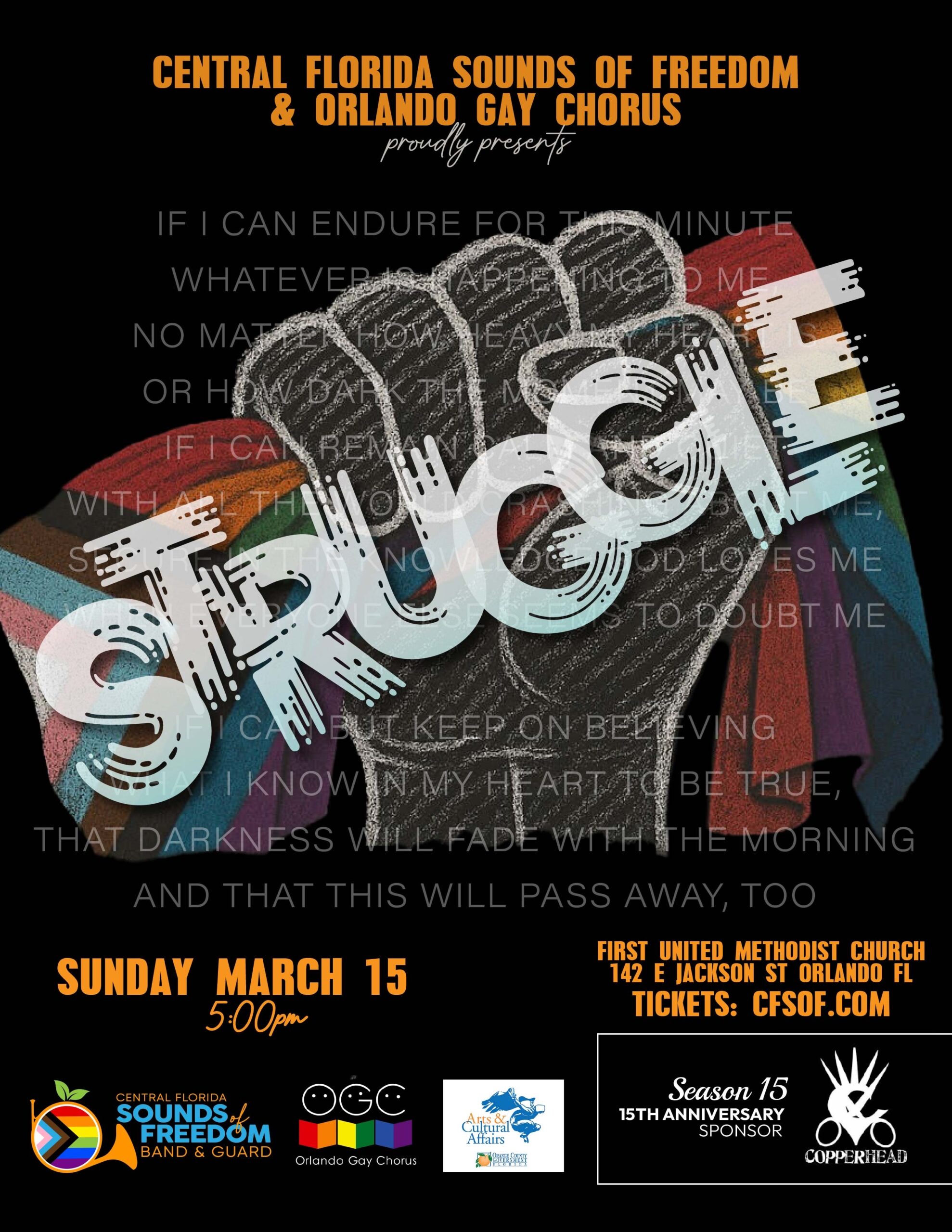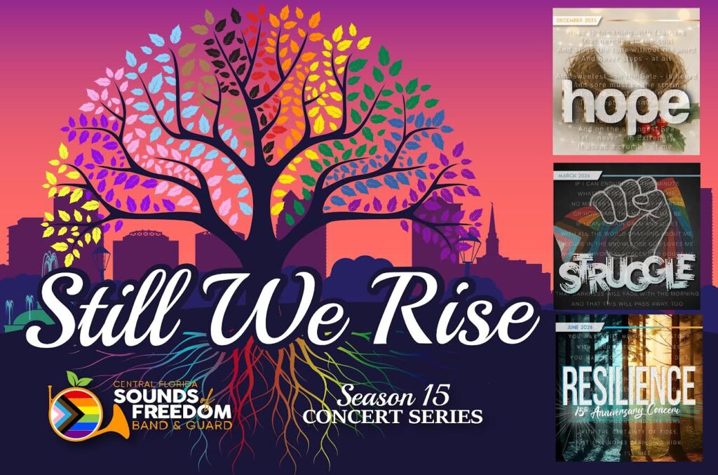 STRUGGLE is a collaborative benefit concert presented by Central Florida Sounds of Freedom Band & Guard and Orlando Gay Chorus, uniting music, movement, and community in support of Orlando Youth Alliance. This powerful evening centers on the shared experiences of challenge, resilience, and hope, while raising critical funds for programs that support LGBTQ+ youth in Central Florida.